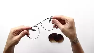 The Metal Frame are designed so that even if you bend them whilst removing the lenses, the frames won't wrap or bend out of shape. To start, turn your glasses towards you and place your thumb in the nose bridge section.